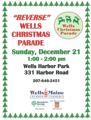 Come drive through our "Reverse" Christmas Parade on Sunday, December 21, 2025 from 1 to 2 pm at the Wells Harbor Park.